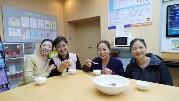 “這湯圓真暖真甜!電信太貼心了!”現(xiàn)場(chǎng)氣氛溫馨,大家圍坐在一起,邊吃湯圓邊聊家常,營(yíng)業(yè)廳仿佛成了一個(gè)溫暖的社區(qū)客廳。在品嘗湯圓的同時(shí),愛(ài)心大使也向居民們?cè)敿?xì)介紹了中國(guó)電信精心打造的“愛(ài)心翼站”公益服務(wù)區(qū)。原來(lái),這一碗湯圓的暖意,只是“愛(ài)心翼站”便民服務(wù)的一個(gè)小小縮影。