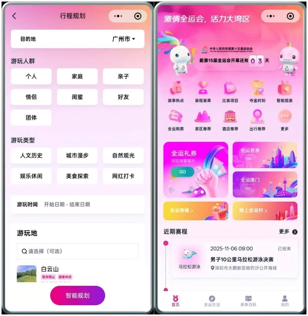 賽場(chǎng)內(nèi)外,服務(wù)持續(xù)在線。面向公眾的“全運(yùn)通”平臺(tái),在天翼云的算力加持下,為觀眾提供從AI導(dǎo)覽、賽事追星到“吃住行游購(gòu)?qiáng)省钡娜溌分腔垠w驗(yàn),讓觀賽更智能、生活更便捷。