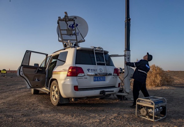面對著陸場地形復雜的挑戰(zhàn),接到保障任務后,中國電信甘肅公司和新疆公司第一時間啟動三級聯(lián)動機制,組建聯(lián)合保障分隊,先后兩次深度參與酒泉衛(wèi)星發(fā)射中心組織的全流程演練,并三次深入無人區(qū)測試,全面評估設備性能。在此基礎上,團隊制定了“分類保障、動態(tài)覆蓋”方案,確保通信保障精準到每一臺設備、每一個時間節(jié)點。通過為核心搜救車隊調派3臺“動中通”應急通信保障車,實現(xiàn)車隊行進中手機信號持續(xù)覆蓋;為其余搜救車輛配備35臺天通車載衛(wèi)星通信終端,確保基礎通信不中斷;為返回艙落點區(qū)域配備1輛靜中通應急通信保障車,專項負責落點區(qū)域手機信號覆蓋;建立后臺實時監(jiān)控設備機制,確保整個通信網絡可控、可靠。