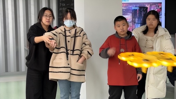 中國電信赤峰分公司精心設(shè)置了前沿科技體驗(yàn)區(qū),邀請家長與孩子共同參與。在專業(yè)人員的指導(dǎo)下,孩子們親手試操作無人機(jī),感受進(jìn)行握手、跟隨、繞行等趣味互動(dòng)。這場“與未來的對話”不僅讓孩子們在游戲中直觀了解了機(jī)器人的工作原理與傳感技術(shù),更在他們心中播下了探索人工智能世界的種子。