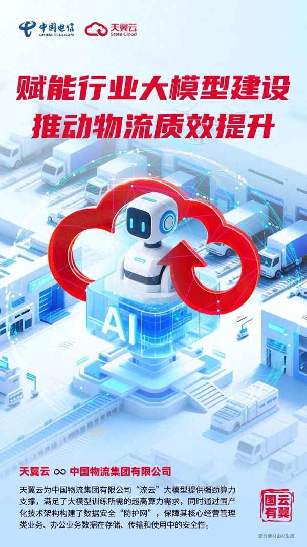 中國物流集團有限公司(以下簡稱“中國物流”)是國務院國資委直接監(jiān)管的股權多元化國有全資中央企業(yè),致力于打造“成為具有全球競爭力的世界一流綜合性現(xiàn)代物流企業(yè)集團”。作為物流行業(yè)的“國家隊”,中國物流積極把握人工智能發(fā)展方向,與中國電信等合作伙伴共同研發(fā)、上線2780億參數(shù)“流云”大模型,有力推動了物流行業(yè)數(shù)智化升級與“人工智能+”生態(tài)發(fā)展,為降低全社會物流成本提供了強有力的技術支撐。天翼云作為云服務國家隊,為“流云”大模型提供了強勁算力支撐,不僅助力中國物流成功實現(xiàn)數(shù)字化轉型,也為整個物流行業(yè)智能化發(fā)展樹立了央企新標桿。