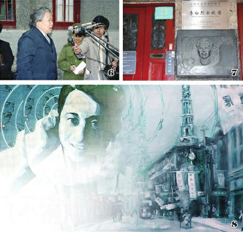6.裘慧英在李白故居修繕展覽開(kāi)放儀式上講話。7.李白烈士故居。8.《永不消逝的電波》電影海報(bào)。