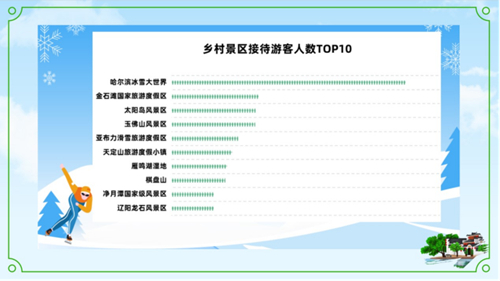 中國電信大數(shù)據(jù)顯示到訪東北三省的游客中,春節(jié)期間出行目的是體驗東北特色的鄉(xiāng)村冰雪文化的游客比23年提升49.3%。同時,春節(jié)期間鄉(xiāng)村景區(qū)迎來大批游客,傳統(tǒng)景區(qū)如冰雪大世界、金石灘度假區(qū)表現(xiàn)依舊強勁,亞布力滑雪場、天定山旅游度假小鎮(zhèn)等新興景區(qū)也成了熱門到訪地。