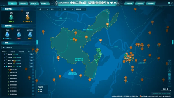 通過面向政府、應(yīng)急、公安等機(jī)構(gòu)預(yù)置預(yù)配天通行業(yè)手機(jī),中國電信衛(wèi)星公司依托天通智能調(diào)度平臺,用“一張圖”呈現(xiàn)可視化指揮調(diào)度,協(xié)助當(dāng)?shù)負(fù)岆U指揮部門精準(zhǔn)、實(shí)時掌握災(zāi)區(qū)及周邊地區(qū)衛(wèi)星電話使用情況。