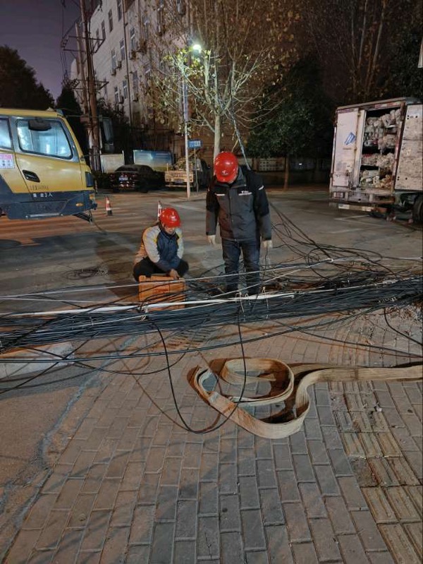12月25日18時(shí)33分,安徽省淮北市烈山區(qū)新蔡鎮(zhèn)過路桿線被過往的車輛掛斷,情況緊急,接到系統(tǒng)障礙單后,為了做好烈山新蔡用戶的通信保障,中國(guó)電信安徽淮北分公司維護(hù)人員第一時(shí)間完成隊(duì)伍集合,19時(shí)到達(dá)桿線障礙現(xiàn)場(chǎng),他們顧不上冬夜刺骨的寒風(fēng),連夜開展應(yīng)急搶修,0時(shí)30分,經(jīng)過6個(gè)小時(shí)緊急搶修,過路桿線障礙修復(fù)。
