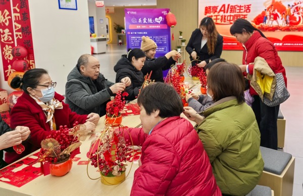 福桶年宵花作為傳統(tǒng)年俗文化的一部分,承載著人們對新年的美好祝愿。中國電信鄭州分公司客服部總監(jiān)李光蓮為現場用戶講解了手工做法,并帶領用戶將各種寓意吉祥的花材和飾品組合在一起,以桶為容器,打造出精美而富有節(jié)日氛圍的裝飾品,象征著新的一年福澤深厚、闔家幸福。在活動進行過程中,愛心大使為用戶講解了常見的網絡詐騙案例,年關將至也是詐騙高發(fā)時期,愛心大使提醒大家牢記防范口訣,提高防騙意識。