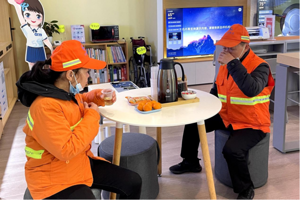 12月初,中國電信常德分公司武陵中路營業(yè)廳愛心翼站啟動了冬日暖心行動。每天,這里都會貼心準備熱騰騰的姜茶、新鮮水果及小零食,并將這些暖心物資放置在醒目位置,方便環(huán)衛(wèi)工人、快遞員、外賣小哥等戶外工作者隨時取用。一杯杯姜茶不僅驅(qū)散了他們身上的寒冷,更傳遞出濃濃的溫情。除了提供飲品和食物,愛心翼站還精心打造了一個溫馨的休息區(qū),配備了舒適的桌椅、便捷的充電設(shè)施。營業(yè)廳負責人表示,戶外工作者是城市的無名英雄,希望愛心翼站的服務能讓大家感受到來自社會的尊重與認可。
