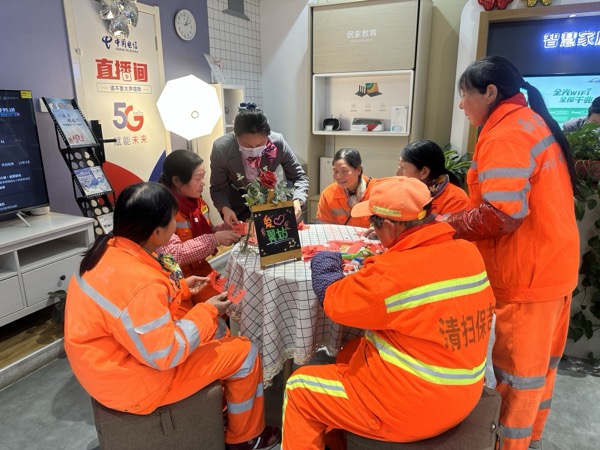 港務(wù)區(qū)電信營(yíng)業(yè)廳的愛(ài)心翼站則邀請(qǐng)了小朋友們和大朋友們一起參加制作手工掛飾的活動(dòng),并現(xiàn)場(chǎng)玩游戲、拆盲盒。小朋友們?cè)谥谱魇止み^(guò)年掛件的同時(shí),還能一邊享受美食,他們的笑臉如同春天里盛開(kāi)的花朵,活潑而燦爛。