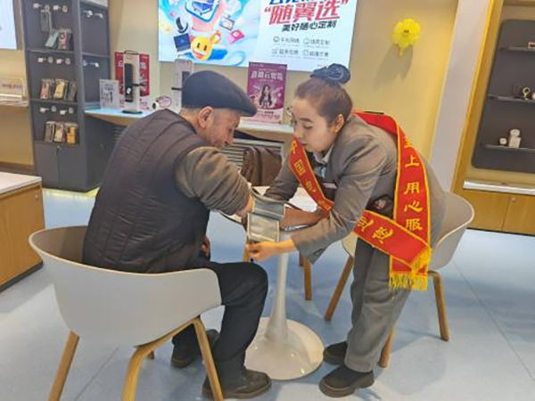 面對(duì)老人對(duì)智能手機(jī)操作的困惑,愛心大使開啟“一對(duì)一”教學(xué)模式,從如何撥打電話、發(fā)送短信這些基礎(chǔ)功能,到使用微信視頻通話與遠(yuǎn)方親人見面,再到掃碼支付避免找零時(shí)的不便,每一個(gè)步驟都講解得細(xì)致入微。他們放慢語(yǔ)速,提高音量,不厭其煩地重復(fù)操作,直到老人眼中露出理解與自信的光芒,成功與家人接通視頻電話的那一刻,老人臉上洋溢的幸福笑容,是對(duì)營(yíng)業(yè)員們最好的回饋。