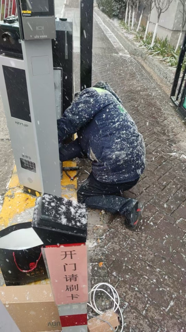 近日,受強(qiáng)冷空氣和暖濕氣流影響,煙臺風(fēng)雪交加,發(fā)布道路結(jié)冰和大風(fēng)黃色預(yù)警,中國電信煙臺開發(fā)區(qū)公司的智家工程師在接到智慧門禁安裝任務(wù)后,火速趕赴現(xiàn)場,在風(fēng)雪低溫環(huán)境下一刻不停,趕在天黑前完成了安裝任務(wù),保障了小區(qū)住戶的通行。