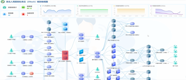 淮北市人民醫(yī)院實現(xiàn)系統(tǒng)上云之后,大大提升了醫(yī)院日常工作的運(yùn)行效率。平臺系統(tǒng)的穩(wěn)定運(yùn)行,是醫(yī)院正常運(yùn)作的關(guān)鍵,中國電信乘云平臺的云業(yè)務(wù)端到端視圖功能,可以展示醫(yī)院平臺系統(tǒng)的關(guān)聯(lián)鏈路,實現(xiàn)全鏈路設(shè)備的可視化管理。