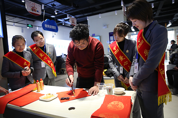 春節(jié)臨近,年味愈發(fā)濃郁。中國電信蘭州分公司特邀省書法協(xié)會的多位書法家,在營業(yè)廳現(xiàn)場書寫春聯(lián),為前來辦理業(yè)務的用戶送上 “福氣”,帶來了滿滿的驚喜與歡樂。