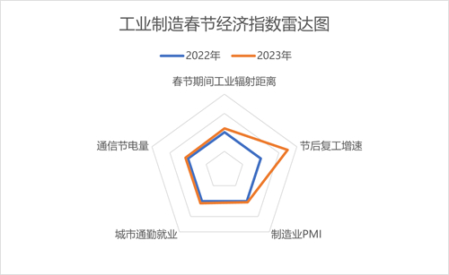 綜合以上數(shù)據(jù),工業(yè)制造春節(jié)經(jīng)濟指數(shù)同比去年農(nóng)歷同期提升20.2%。