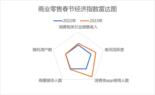 綜合以上數(shù)據(jù),商業(yè)零售春節(jié)經(jīng)濟指數(shù)同比去年農(nóng)歷同期提升26.1%。