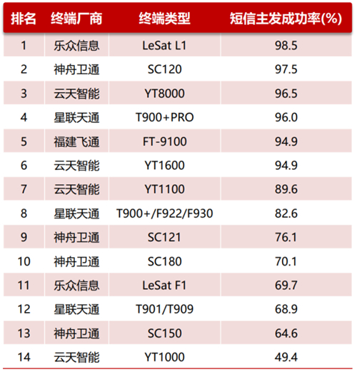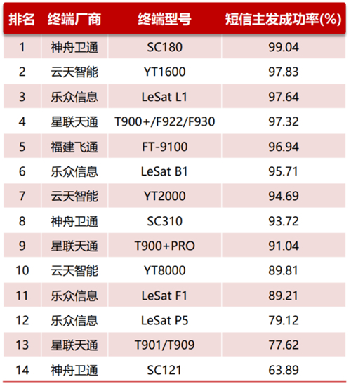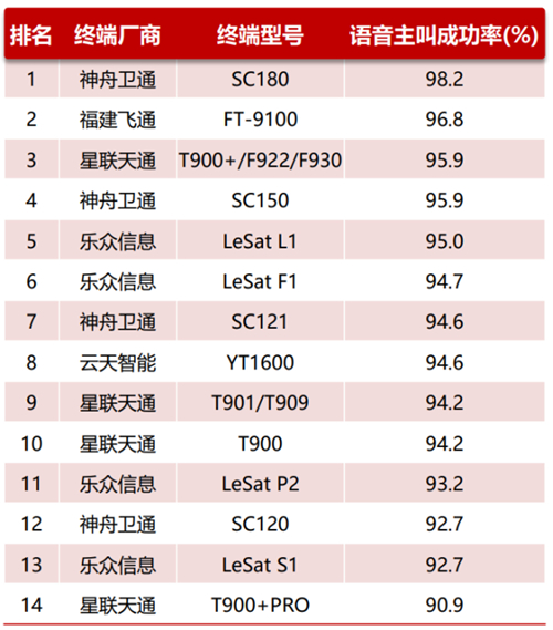 2022年12月-2023年1月,根據(jù)天通信令監(jiān)測(cè)系統(tǒng)的主叫接入質(zhì)量分析模塊顯示數(shù)據(jù),語(yǔ)音主叫成功率排名如下: