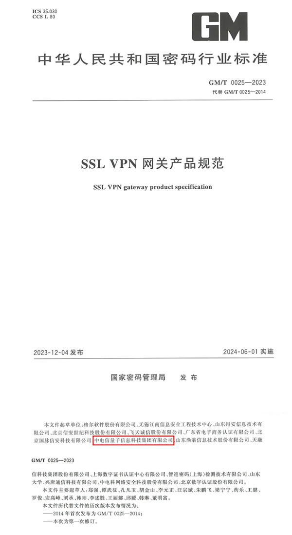 中電信量子集團積極參與行業(yè)標準制定,先后參與制定GM/T 0026-2023、GM/T 0025-2023等網(wǎng)關(guān)產(chǎn)品行業(yè)標準,為具體網(wǎng)關(guān)產(chǎn)品的使用、管理及合規(guī)性、某些功能項的實施和檢測方法、性能測試方法制定明確規(guī)范,提升網(wǎng)關(guān)產(chǎn)品安全性與合規(guī)性,推動技術(shù)創(chuàng)新與產(chǎn)業(yè)升級,規(guī)范市場秩序,提升用戶體驗與滿意度。