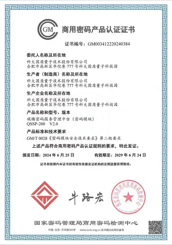 截至目前,中電信量子集團已牽頭制定量子行業(yè)國際標準1項、國家行業(yè)標準9項,參與制定國家及行業(yè)標準24項;申請專利92項、申請知識產(chǎn)權(quán)150項,獲批SIM卡、安全網(wǎng)關(guān)、密碼機等12項商密證書。