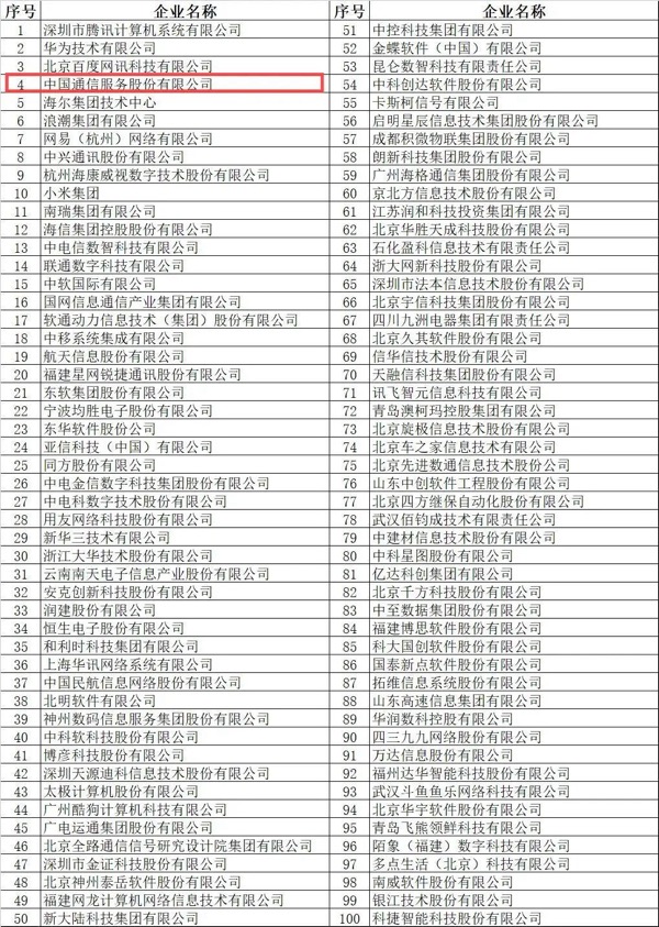 中國通服連續(xù)四年穩(wěn)居“中國軟件百強”第四