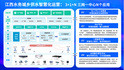 該項目采用“3+1+N”解決方案,通過物聯(lián)網(wǎng)、互聯(lián)網(wǎng)和移動網(wǎng)技術(shù)的結(jié)合,在實現(xiàn)信息安全可控的同時,匯聚形成一個數(shù)據(jù)中心,為水務(wù)運營管理提供多個應(yīng)用場景,賦能水務(wù)行業(yè)數(shù)字化轉(zhuǎn)型。
