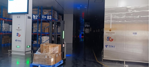 (圖為在惠誠(chéng)食品5G智慧工廠原料倉(cāng)庫(kù)內(nèi)工作的5gAGV 陳洲/攝)
