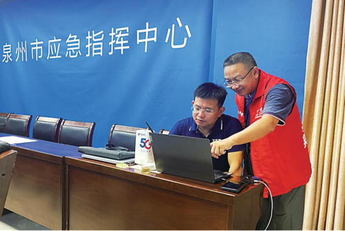 泉州電信入駐市應(yīng)急指揮中心保障通信暢通。