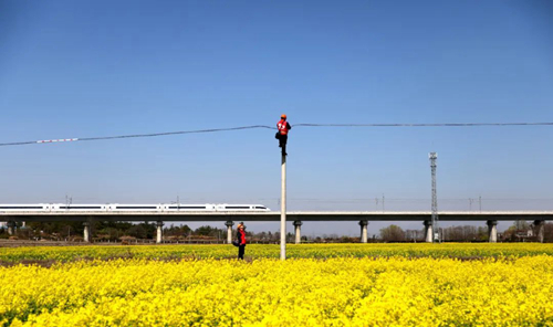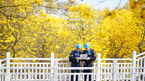 花開金黃,惹人醉,電信人檢測基站信號,為游客及管理人員提供網(wǎng)絡保障。