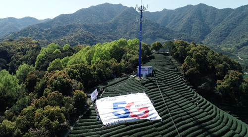 梯田茶園郁郁蔥蔥,電信5G基站筆直聳立,助力農(nóng)業(yè)轉型升級。