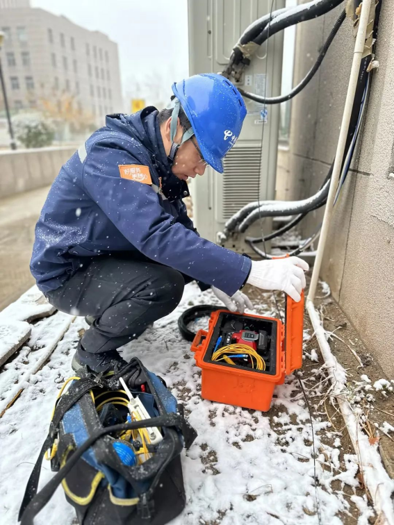 8、12月11日,河南周口迎來(lái)了入冬以來(lái)第一場(chǎng)降雪。收到告警信息后,電信智家工程師便早早來(lái)到故障現(xiàn)場(chǎng),開(kāi)始戶外作業(yè),排查處理故障,保障用戶網(wǎng)絡(luò)正常使用。