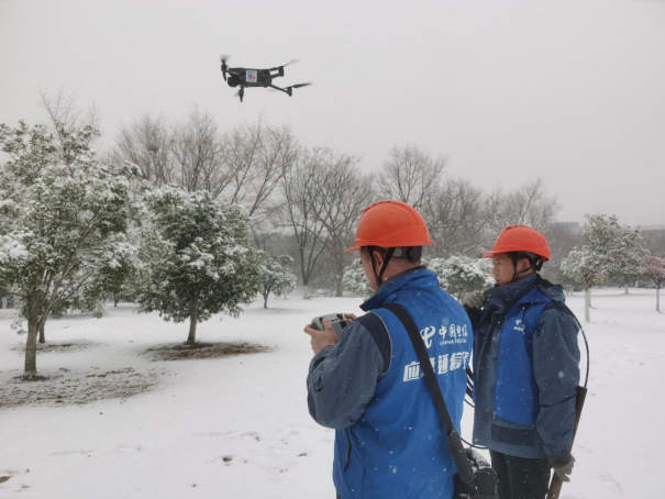 3、南京天降大雪,中國電信江蘇南京分公司迅速反應(yīng),在保障一線人員自身安全防護的基礎(chǔ)上,利用無人機等做好線路和機房設(shè)備巡檢,遇到災情及時報告,組織搶修;積極服務(wù)用戶,按照應(yīng)急預案要求做好應(yīng)急準備;對數(shù)據(jù)中心機樓的柴發(fā)油機、中央空調(diào)及水系統(tǒng)等基礎(chǔ)設(shè)施開展重點巡查,及時對油機供油管路、冷卻塔供水管路、水箱表等增加保溫措施,全力保障通信正常。