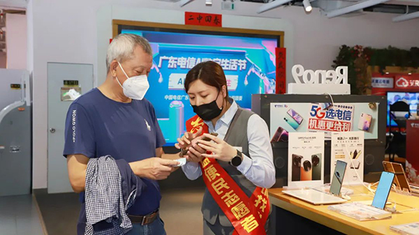 中國電信廣州分公司營業(yè)廳開展“AI有愛,數(shù)字銀生”主題活動,向“銀發(fā)族”帶來詳盡的反詐騙案例宣講和精彩的AI守護(hù)產(chǎn)品演示和體驗。