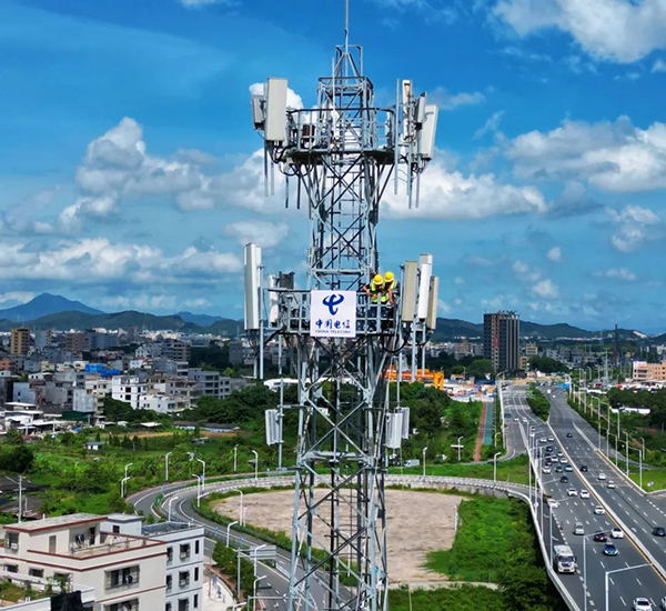 中國電信潮州分公司技術(shù)人員攀爬通信基站,檢查網(wǎng)絡(luò)設(shè)備,確保通信信號暢通無阻。