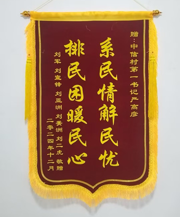 近日,咸陽市禮泉縣南坊鎮(zhèn)中信村黨支部、村委會和群眾代表將一面印有“排民困暖民心,系民情解民憂”的錦旗送到了電信駐村第一書記嚴高彥手中,表達了他們對駐村工作的肯定和感激。在奔赴駐村工作的400多個日夜里,咸陽禮泉分公司嚴高彥始終把村民的事放在心坎上,用實際行動贏得了幫扶單位的認可和信賴,收獲了村民的情誼。