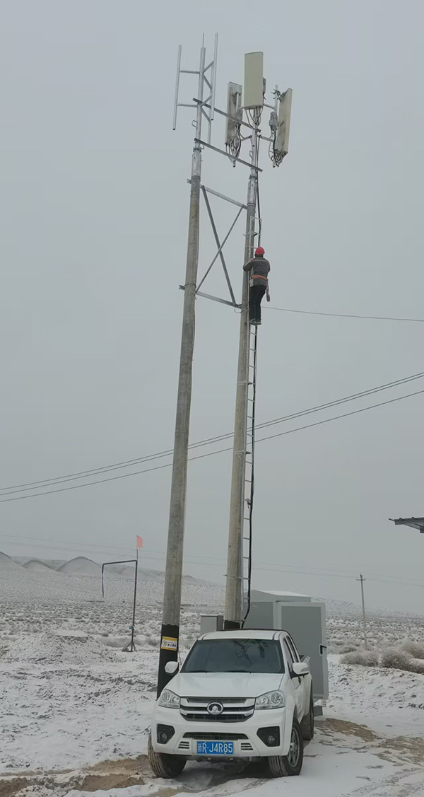 阿不來提憑借豐富的經驗與果敢的決斷力,迅速制定搶修方案,與另外2名同事們分工協(xié)作,爬上基站鐵塔開始高空搶修作業(yè)。此時盡管雙手被凍得通紅僵硬,身體也在凜冽寒風中瑟瑟發(fā)抖,但他們憑借著精湛的技能和頑強的毅力,克服一個個難題,確保每項操作都精準無誤,每個步驟都嚴謹規(guī)范。經過7個多小時的連續(xù)奮戰(zhàn),基站終于恢復運行,石油勘探隊的通信也順利恢復暢通。