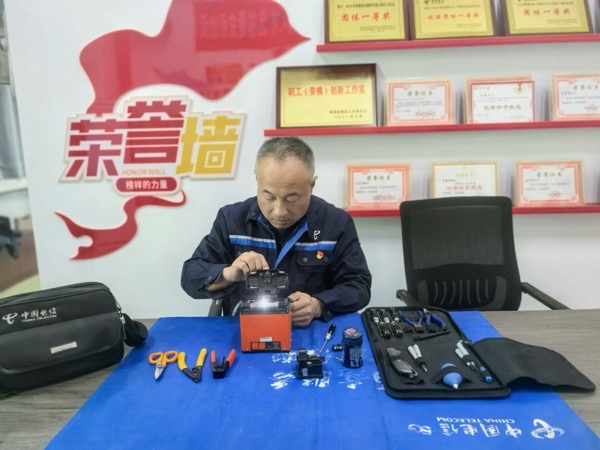 王佑江在維修光纖熔接機(jī)