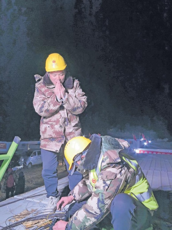 災(zāi)后一小時(shí)首批進(jìn)入災(zāi)區(qū),第一時(shí)間開(kāi)展抗震救援;在冬夜雪山上艱難前行,只為盡快搶修受損基站;在刺骨寒風(fēng)中徒手作業(yè),輪番開(kāi)展受損光纜熔纖工作……連日來(lái),在西藏定日縣,中國(guó)電信的每一個(gè)崗位都轉(zhuǎn)變成救援崗位,每一個(gè)員工都化身為救援戰(zhàn)士,越來(lái)越多穿著電信藍(lán)色工裝的人被人們記住。