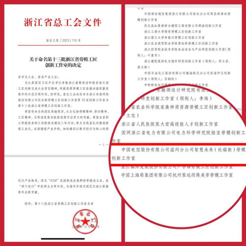 近日,浙江省總工會(huì)命名 70 家創(chuàng)新工作室為第十三批浙江省勞模工匠創(chuàng)新工作室,浙江溫州電信智慧未來(lái)(杜瑞新)勞模創(chuàng)新工作室榜上有名。