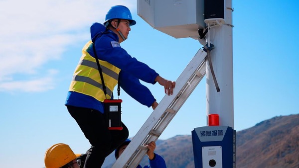 中國電信新疆阿勒泰分公司楊雷正在現(xiàn)場檢測基站信號