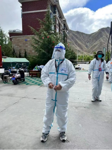 向巴曲珍,在接到公司召集干部員工下沉到社區(qū)、街道配合做好核酸檢測(cè)服務(wù)、人員排查追蹤、環(huán)境消殺整治、困難群眾幫扶、物資保障供應(yīng)等工作的通知后,第一時(shí)間主動(dòng)與社區(qū)聯(lián)系后到嘎瑪貢桑4組89號(hào)值守。她小小的身軀,穿上了與自己身材不符的防護(hù)服,迸發(fā)出的卻是強(qiáng)大的力量和信念,她堅(jiān)信,只要大家共同努力,一定會(huì)早日戰(zhàn)勝疫情,讓拉薩早日恢復(fù)昔日的熱鬧