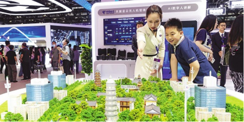 此外,在5G發(fā)展專區(qū),“5G﹢智慧礦山”“5G國(guó)產(chǎn)機(jī)器人遠(yuǎn)程手術(shù)”等案例,展現(xiàn)了中國(guó)電信通過(guò)5G創(chuàng)新應(yīng)用賦能千行百業(yè)高質(zhì)量發(fā)展;在信息無(wú)障礙專區(qū),“愛(ài)心翼站”公益服務(wù)品牌、針對(duì)老年人提供的智能看護(hù)產(chǎn)品,凸顯了中國(guó)電信認(rèn)真落實(shí)堅(jiān)持以人民為中心的發(fā)展思想的生動(dòng)實(shí)踐;在“雙碳”專區(qū),11塊大展屏和8大沙盤(pán),全面呈現(xiàn)了中國(guó)電信以“1248”“雙碳”行動(dòng)計(jì)劃為指引,在綠色低碳發(fā)展過(guò)程中取得的諸多成效。