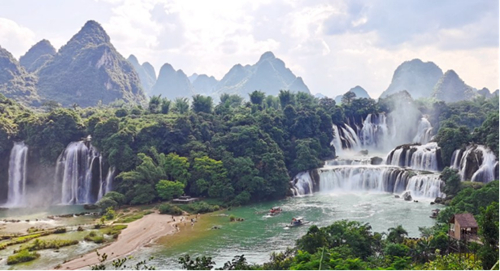 盛夏時(shí)節(jié),地處中越邊境的大新縣德天瀑布迎來一年的豐水期,湍急的河水從70多米高的懸崖上奔涌而下,氣勢雄渾,蔚為壯觀。隨著暑假來臨,這個(gè)被譽(yù)為“亞洲第一大跨國瀑布”的5A級(jí)旅游景區(qū)迎來游客小高峰。7月7日中午,在德天瀑布景區(qū)游客中心偌大的停車場內(nèi),停滿了來自全國各地的自駕游車輛,載滿游客的接駁巴士在景區(qū)內(nèi)忙碌地穿梭。