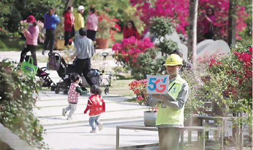 在蓮花山簕杜鵑花展期間,深圳電信工作人員在如織人流中進行園區(qū)信號覆蓋測試,保障用戶體驗。
