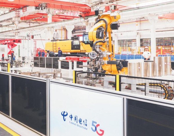 2021年6月16日,中國(guó)電信、三一重工和華為公司聯(lián)合舉辦5G全連接工廠發(fā)布會(huì),國(guó)內(nèi)裝備制造業(yè)首個(gè)5G全連接工廠落地北京昌平區(qū)。圖為5G全連接工廠實(shí)景。