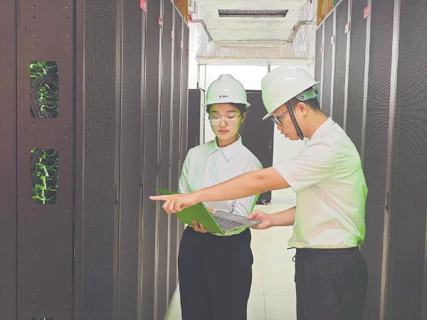 中國電信云網(wǎng)工程師在海南人工智能計算中心進行日常巡檢。