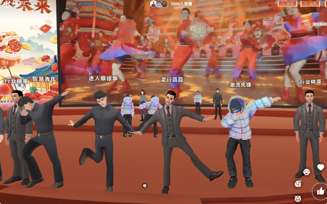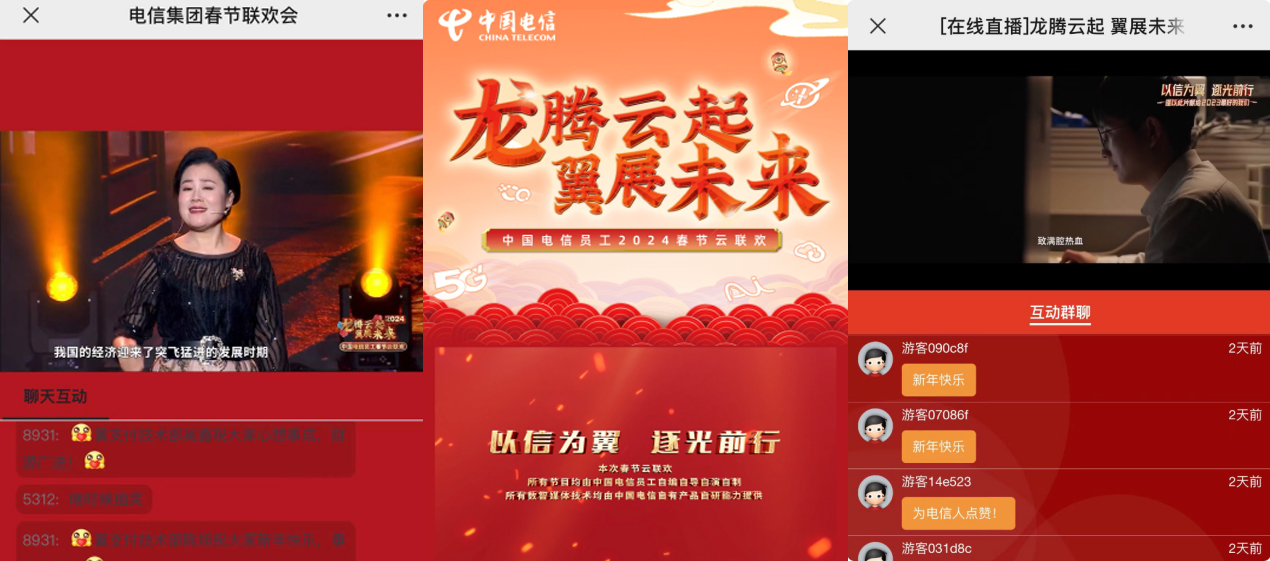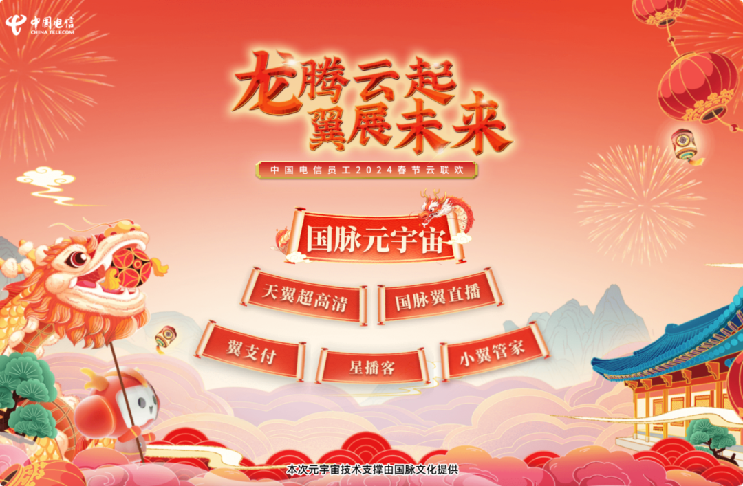 2024年2月2號(hào),中國電信員工2024年春節(jié)云聯(lián)歡正式開啟,本次活動(dòng)首次采用新技術(shù),新視覺方式展現(xiàn),國脈文化為中國電信集團(tuán)全體員工提供沉浸式、高互動(dòng)、新視覺的元宇宙聯(lián)歡會(huì),為整個(gè)云聯(lián)歡提供線上全流程直播技術(shù)支撐。活動(dòng)所有核心能力均出自國脈文化自有核心能力,包括元宇宙技術(shù),音視頻直播技術(shù)等。