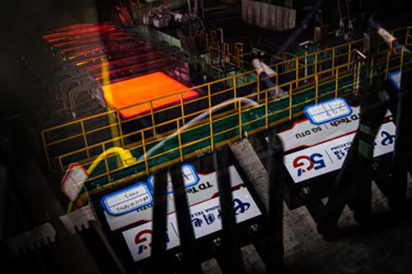 在這里,機(jī)器的轟鳴聲與金屬碰撞發(fā)出回響,一條條表面泛著橘紅色光芒的鋼板緩緩?fù)ㄟ^軋機(jī),完成“軋”這一重要工序。這些“新鮮出爐”的鋼板溫度高達(dá)900多攝氏度。
