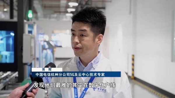 中國電信杭州分公司5G及云中心技術(shù)專家蔣輝說:發(fā)現(xiàn)他們最難的其實在數(shù)字化產(chǎn)線,產(chǎn)線上原有的數(shù)據(jù)沒有辦法第一時間獲取。發(fā)揮我們“5G+云網(wǎng)”的優(yōu)勢,更好去施展新型工業(yè)化場景的拓展。