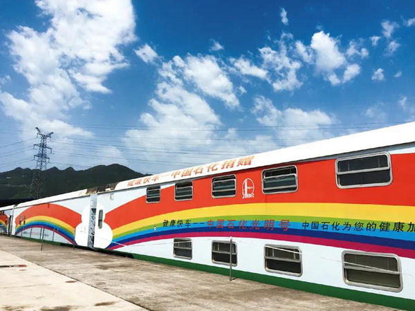 中央企業(yè)把健康扶貧放在重要位置,努力解決貧困地區(qū)“看病難”、“看病遠(yuǎn)”等突出困難。2004年以來,中國石化連續(xù)16年開展“中國石化光明號”健康快車公益項目,使4.6萬名貧困白內(nèi)障患者重見光明。圖為2015年5月13日,“中國石化光明號”健康快車在湖北省恩施土家族苗族自治州開展公益活動。中國石化供圖 王志東/攝