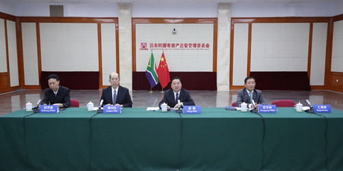 戈?duì)柕しe極評(píng)價(jià)中國(guó)共產(chǎn)黨100 年來(lái)團(tuán)結(jié)帶領(lǐng)中國(guó)人民取得的偉大成就,贊賞中國(guó)國(guó)有企業(yè)改革發(fā)展取得的巨大成功,贊同雙方達(dá)成的系列合作共識(shí),表示南中兩國(guó)國(guó)有企業(yè)都是推動(dòng)國(guó)民經(jīng)濟(jì)發(fā)展的重要力量,兩國(guó)國(guó)資國(guó)企發(fā)展改革道路戰(zhàn)略契合,任務(wù)相近,目標(biāo)一致。希望學(xué)習(xí)借鑒中國(guó)國(guó)資監(jiān)管和國(guó)企改革的理念、經(jīng)驗(yàn)和實(shí)踐,愿意與中方繼續(xù)加強(qiáng)國(guó)資國(guó)企間多領(lǐng)域的溝通與協(xié)作,完善工作機(jī)制,開(kāi)展對(duì)口交流,助力提升南非國(guó)企全球競(jìng)爭(zhēng)力,使南非國(guó)企在促進(jìn)經(jīng)濟(jì)增長(zhǎng)特別是基礎(chǔ)設(shè)施建設(shè)、再工業(yè)化進(jìn)程等方面發(fā)揮更大作用。