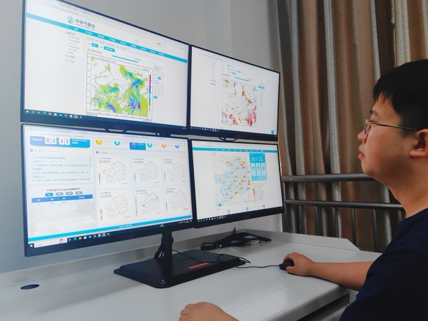 “受臺風‘格美’登陸影響,貴州省高溫范圍將會減少,全省大部分將會出現(xiàn)分散陣雨或雷雨?!?月24日,在貴州省氣象局項目研究室內(nèi),工作人員通過風速、濕度、氣壓等氣象要素以及后臺測算精準分析出貴州省未來幾天天氣情況。