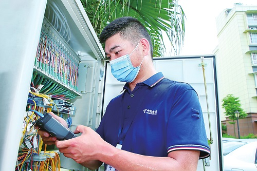 近日,四川多地發(fā)布高溫橙色預(yù)警,很多地區(qū)氣溫達(dá)35℃以上。中國(guó)電信四川公司員工戰(zhàn)高溫、斗酷暑,依然奮戰(zhàn)在抗擊疫情、保障通信、服務(wù)客戶的一線。正是有這些基層一線電信員工的無私奉獻(xiàn),才有網(wǎng)絡(luò)安全穩(wěn)定,才有我們美好的互聯(lián)網(wǎng)生活。圖為裝維工程師在高溫酷暑下檢修線路。